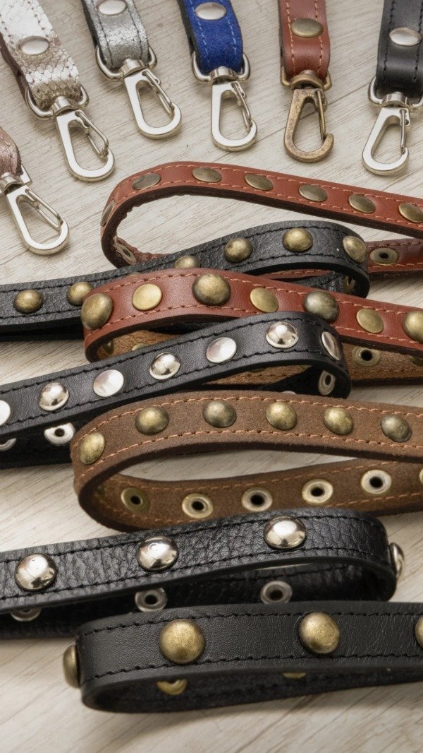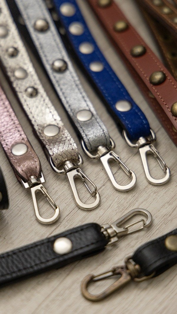 Llavero de correa de cuero vacuno..detalles en tachas..